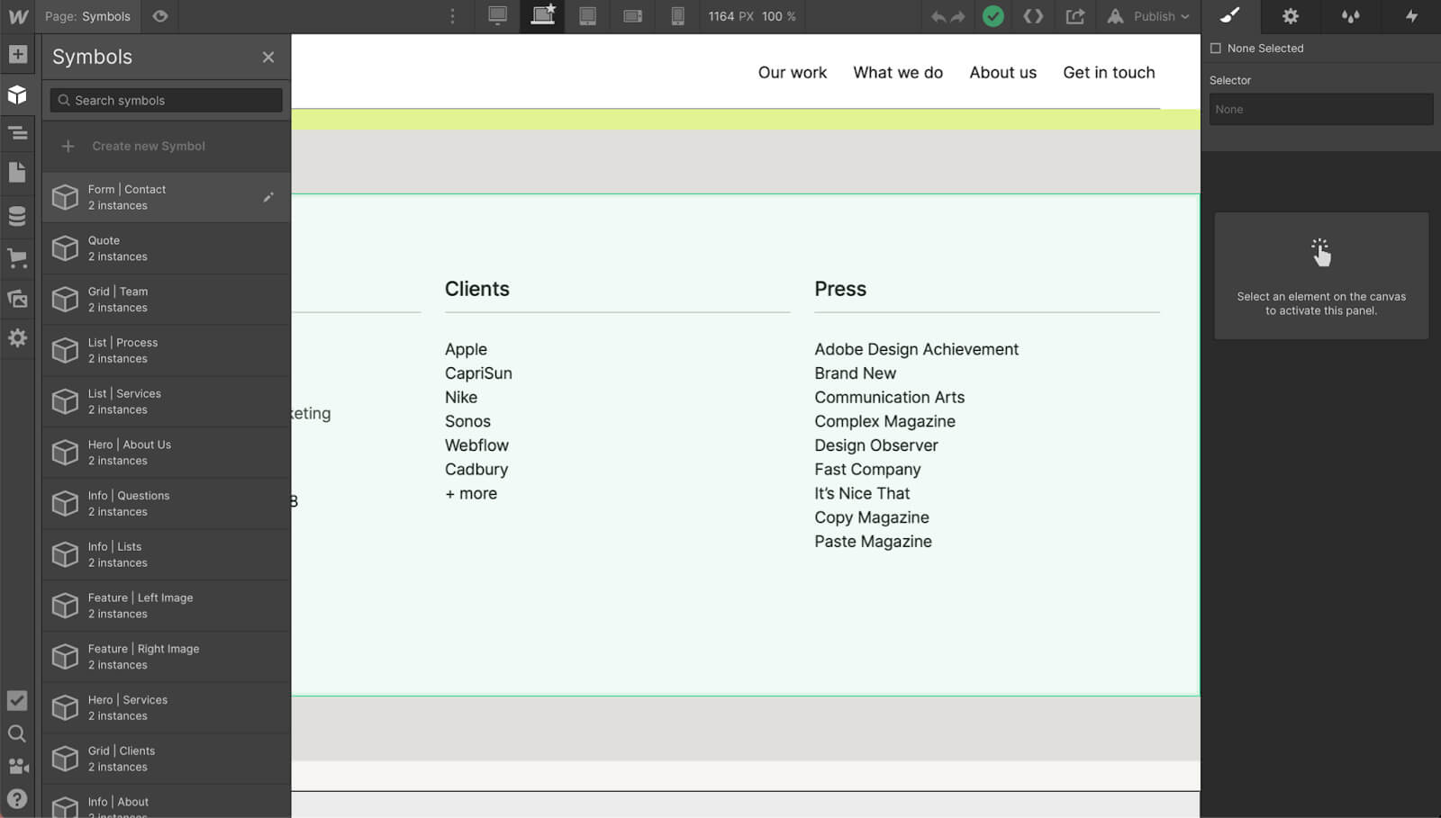 Let's say you've just finished a new website for a client inside of Webflow (hopefully not all in one coffee-fuelled developer sprint). Since all of the website pages are built on stackable sections that sit one on top of each other, you can add one extra step in to make the website 300% more powerful down the line - the drag and drop symbol system.