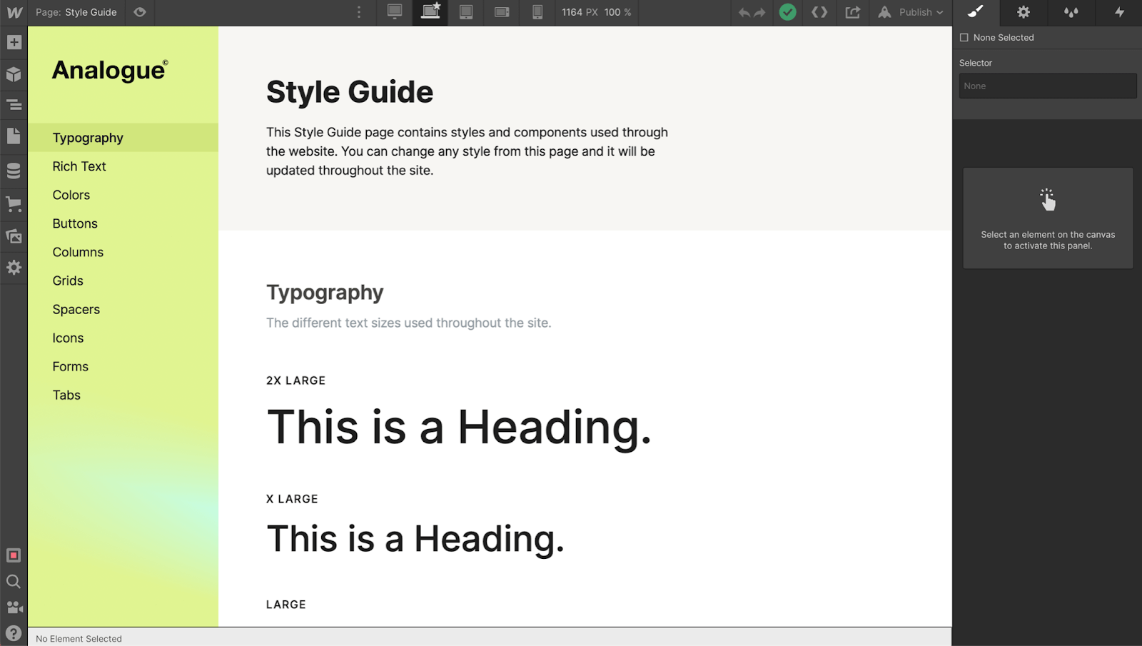 After the editor I take clients through the designer. Again, you don't need to show every single feature, just go through the basics of how you've set up pages, and where they can find the style guide.